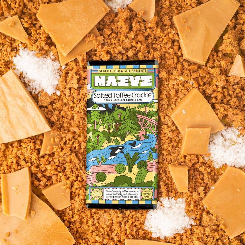Seattle Chocolate is now Maeve Chocolate - where we believe you can have it all. We’re championing ethical practices while cheering on your taste buds. We’re empowering women and giving them a moment of peace when they get home. We rally around our community, we show up, we bring treats. We’re environmentally friendly and also just like, regular friendly. When you pick Maeve you’re choosing a sustainably sourced, eco-conscious, woman-owned brand – and you’re also choosing FUN. The best flavors, the best taste, the cutest packaging.