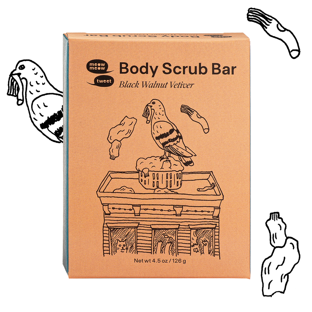 A scrubby exfoliator with mind-balancing vetiver. This exfoliating bar uses black walnut hull powder to slough away old skin cells and reveal softer, smoother skin beneath. It works best when rubbed directly against skin. Lavender essential oil calms the nervous system and vetiver is a profound mood balancer that also fights inflammation and tightens skin. The bar is a deep brown black and the scent is an earthy floral. USE INSTRUCTIONS: Lather over entire body; rinse, live, repeat. Take care to avoid eyes. If contact occurs, rinse with water.