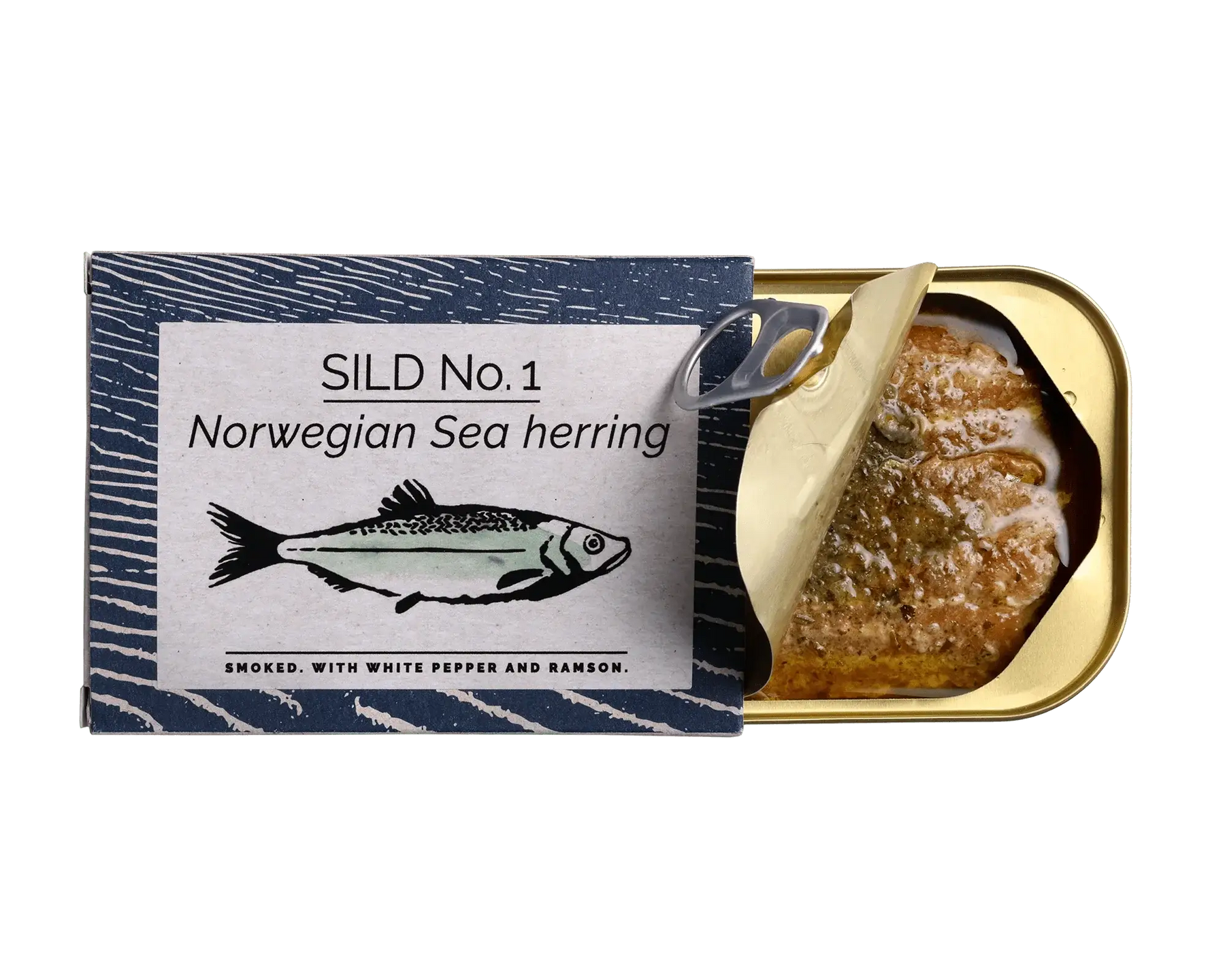 Herring has been fundamental to Nordic fishing, trade and food culture since the Middle Ages. The herring in this FANGST can is of the 'Atlantic' species, caught in The Norwegian Sea. With a light smoke from beech wood and a mild spicing of white pepper and ramson (wild garlic), Fangst aimed for a taste of the coast with a hint of the forest.