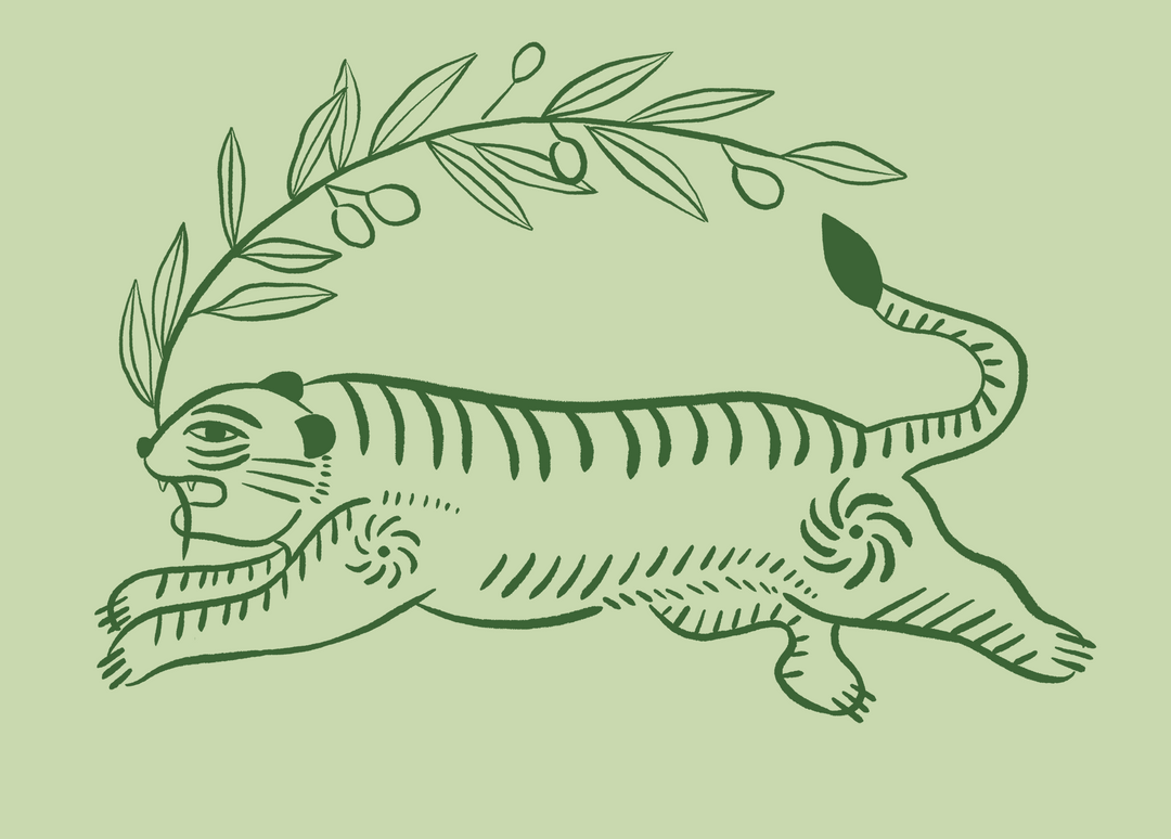 Our logo of the green tiger, inspired by the Vietnamese folk paintings, represents an empowerment of the sustainable movement. The tiger, which represents strength and resilience, carries an olive branch, a symbol of peace and joy.