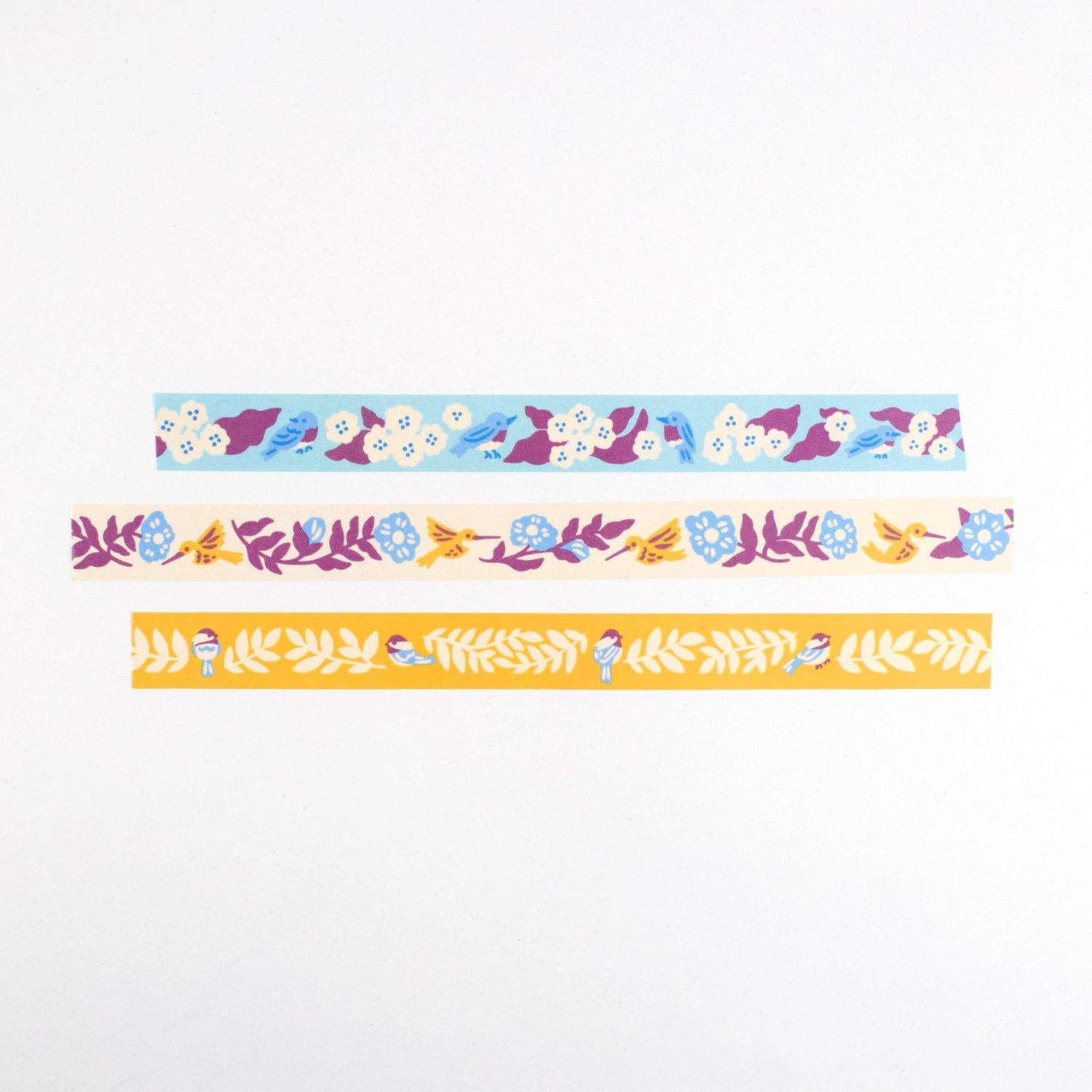Brighten up your journal, personalize an envelope, or organize a notebook with Nuthatch Studio's Birds & Blooms Washi Tape Set featuring bluebirds, hummingbirds, and chickadees designed by Chrissie Van Hoever.